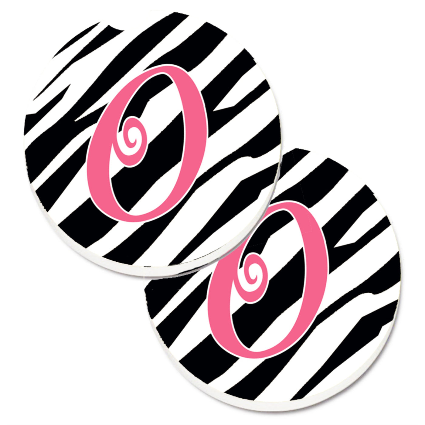 'Caroline's Treasures Monogram Initial O Zebra Stripe & Pink Set of 2 Cup Holder Car Coasters CJ1037-OCARC 2.56 Multicolor''