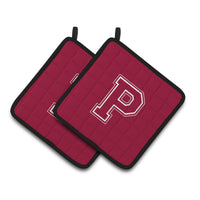 'Caroline's Treasures Monogram Initial P Maroon & White Pair of Pot Holders CJ1032-PPTHD 7.5HX7.5W Multicolor''