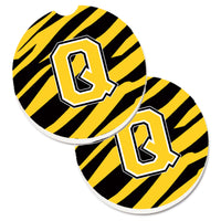 'Caroline's Treasures Monogram Initial Q Tiger Stripe - black Gold Set of 2 Cup Holder Car Coasters CJ1026-QCARC 2.56 Multicolor''