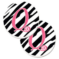 'Caroline's Treasures Monogram Initial Q Zebra Stripe & Pink Set of 2 Cup Holder Car Coasters CJ1037-QCARC 2.56 Multicolor''
