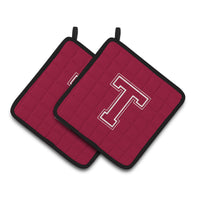 'Caroline's Treasures Monogram Initial T Maroon & White Pair of Pot Holders CJ1032-TPTHD 7.5HX7.5W Multicolor''