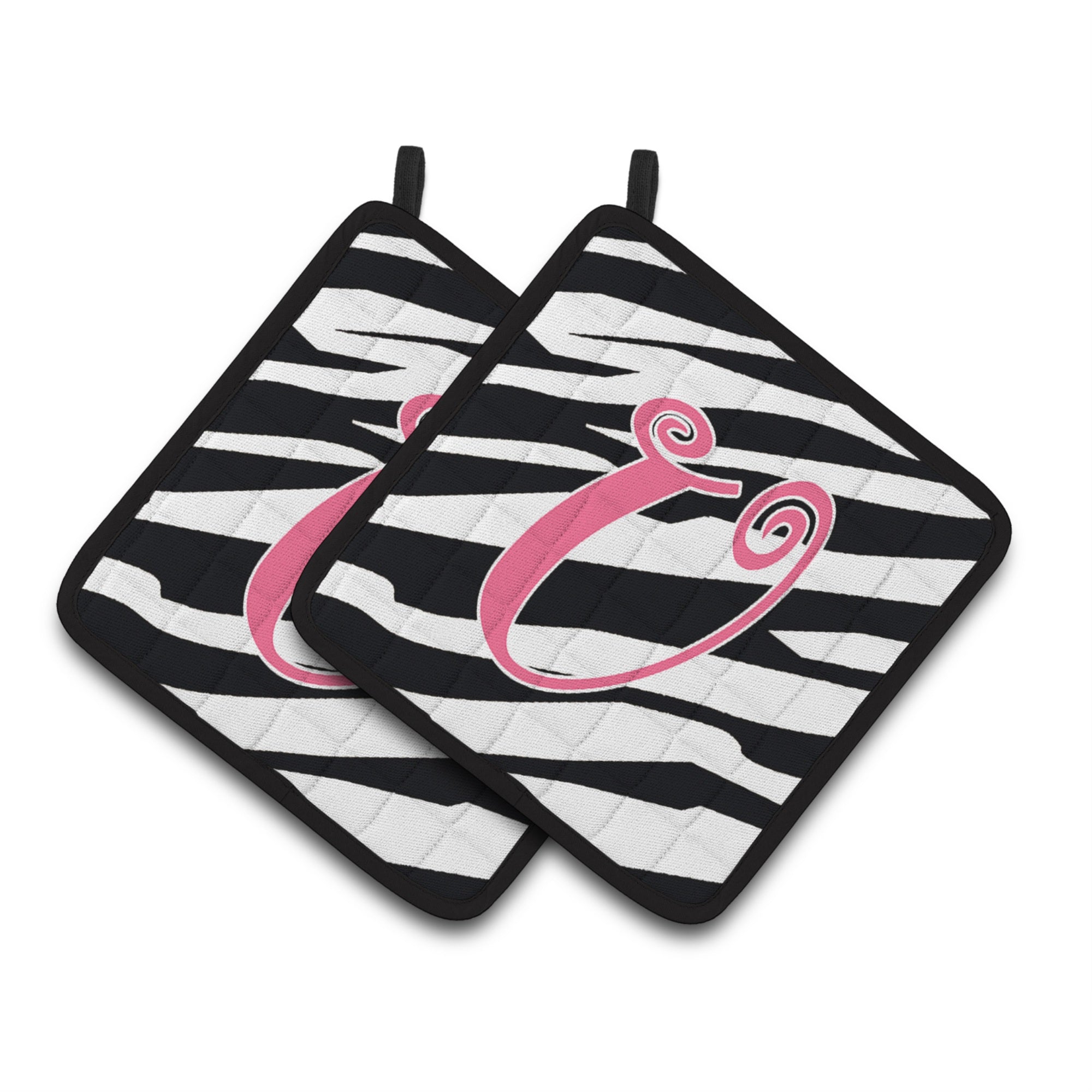 'Caroline's Treasures Monogram Initial U Zebra Stripe & Pink Pair of Pot Holders CJ1037-UPTHD 7.5HX7.5W Multicolor''