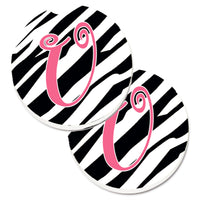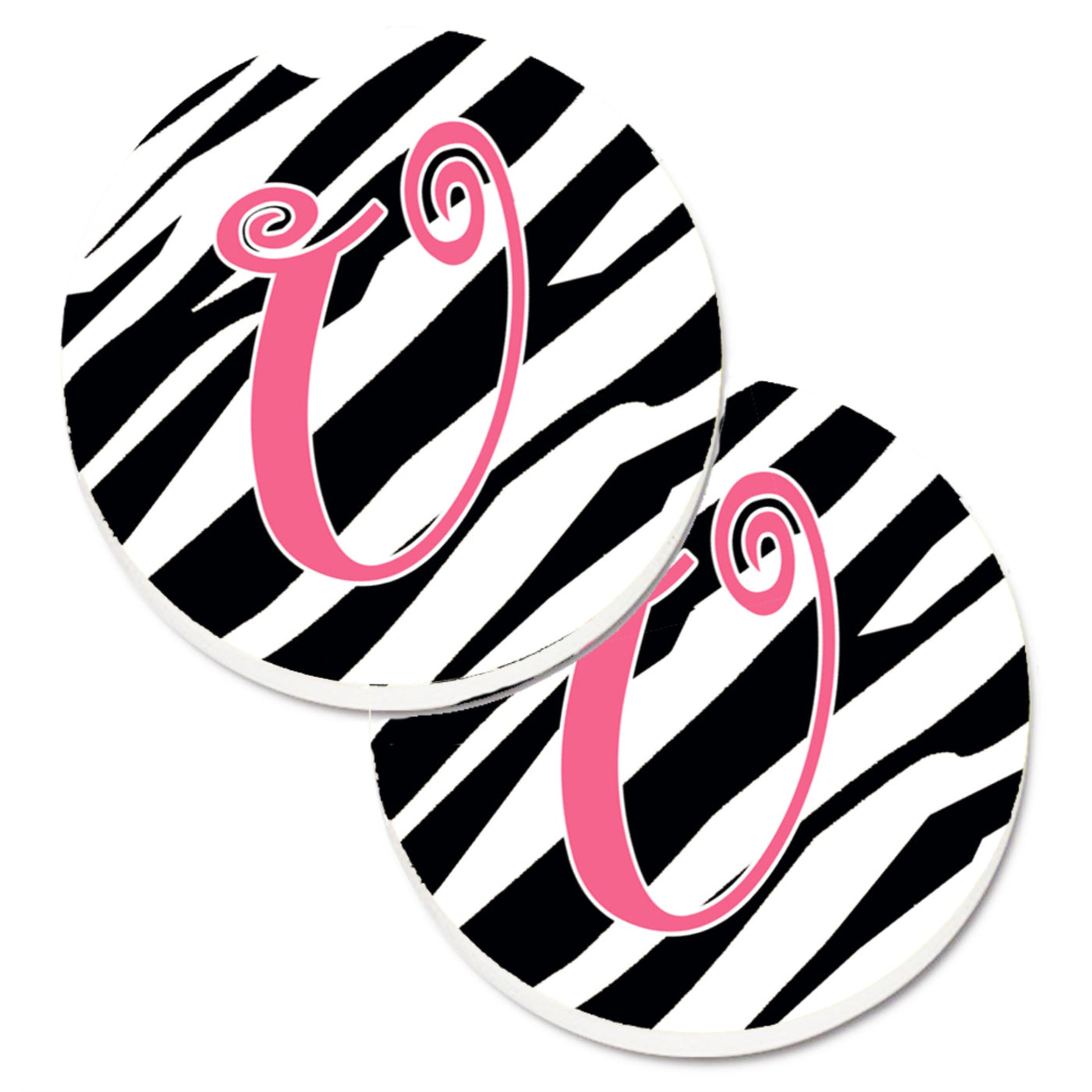 'Caroline's Treasures Monogram Initial U Zebra Stripe & Pink Set of 2 Cup Holder Car Coasters CJ1037-UCARC 2.56 Multicolor''