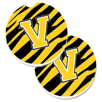 'Caroline's Treasures Monogram Initial V Tiger Stripe - black Gold Set of 2 Cup Holder Car Coasters CJ1026-VCARC 2.56 Multicolor''