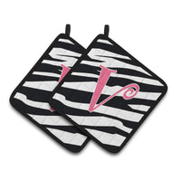 'Caroline's Treasures Monogram Initial V Zebra Stripe & Pink Pair of Pot Holders CJ1037-VPTHD 7.5HX7.5W Multicolor''