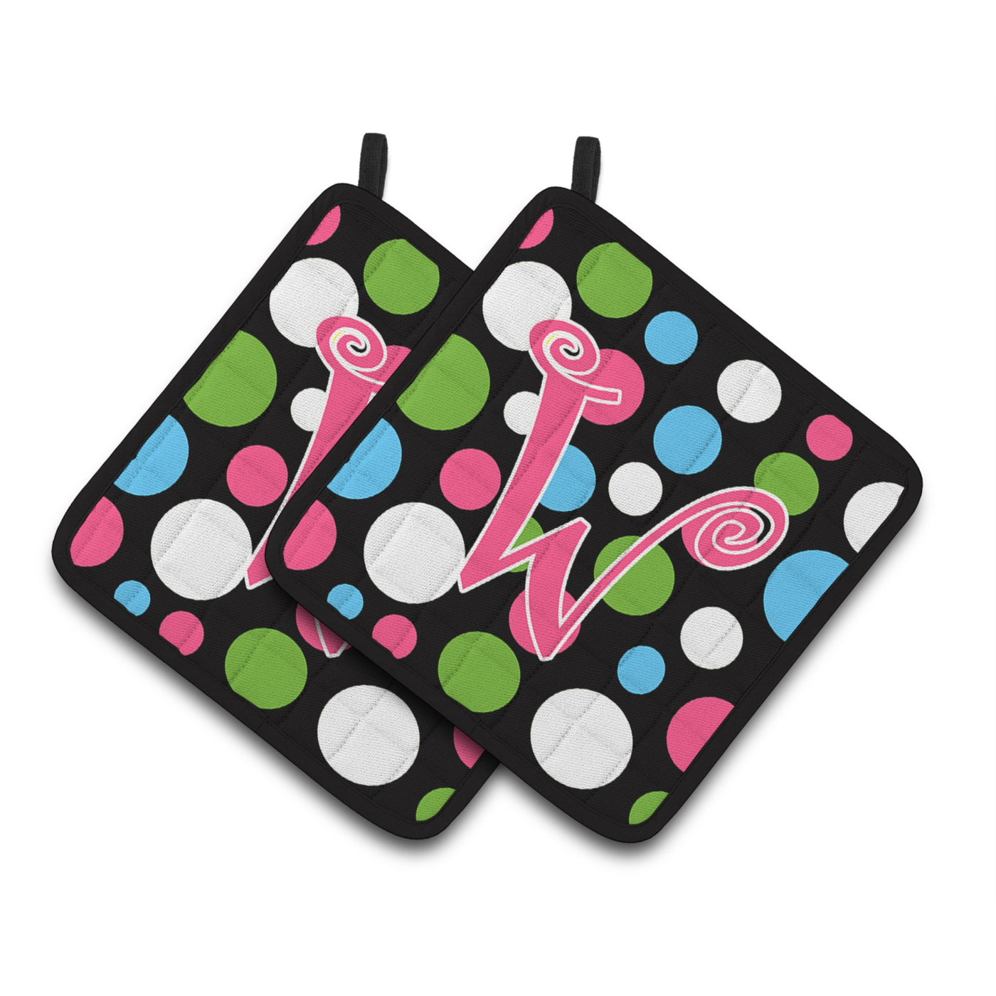 'Caroline's Treasures Monogram Initial W Polkadots & Pink Pair of Pot Holders CJ1038-WPTHD 7.5HX7.5W Multicolor''
