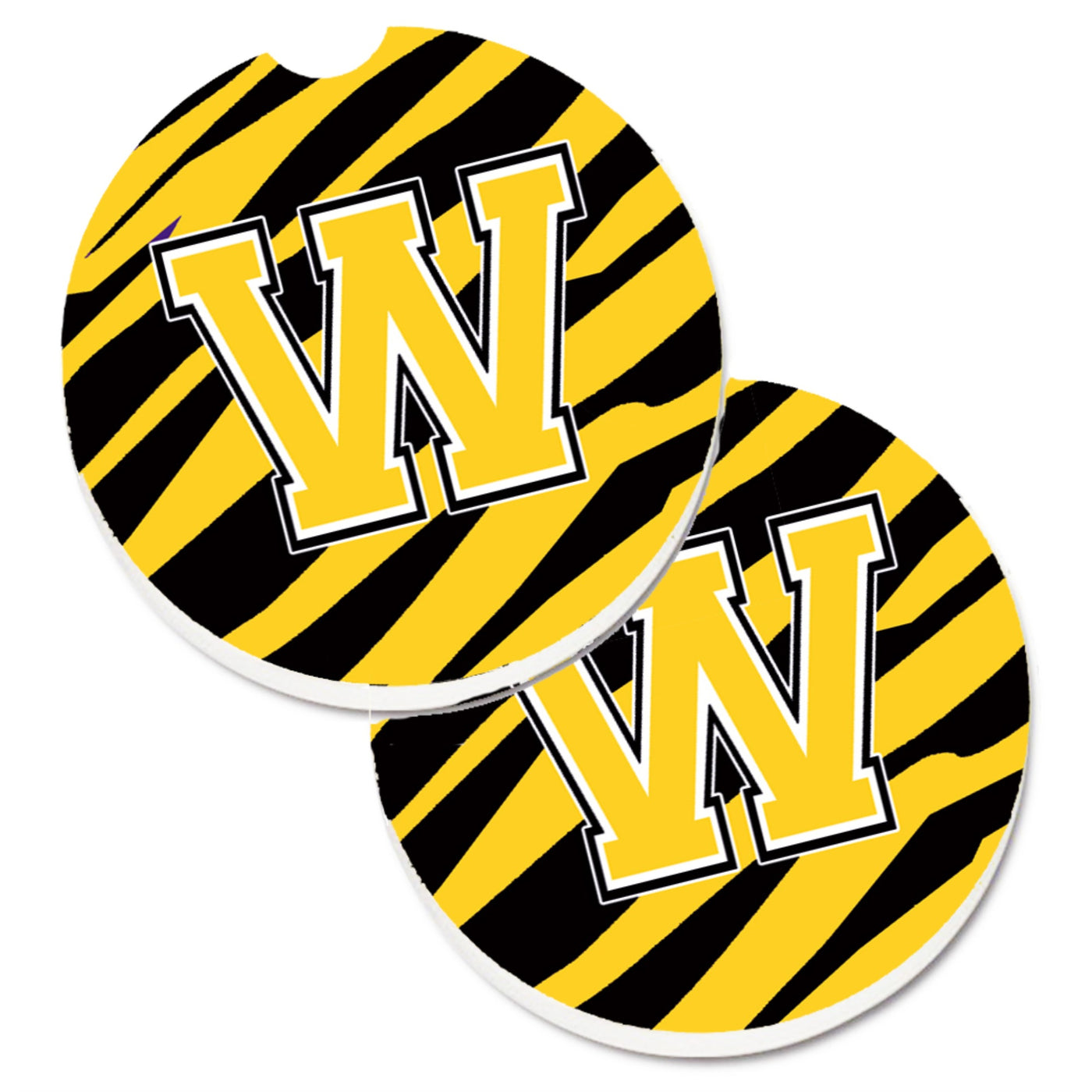 'Caroline's Treasures Monogram Initial W Tiger Stripe - black Gold Set of 2 Cup Holder Car Coasters CJ1026-WCARC 2.56 Multicolor''