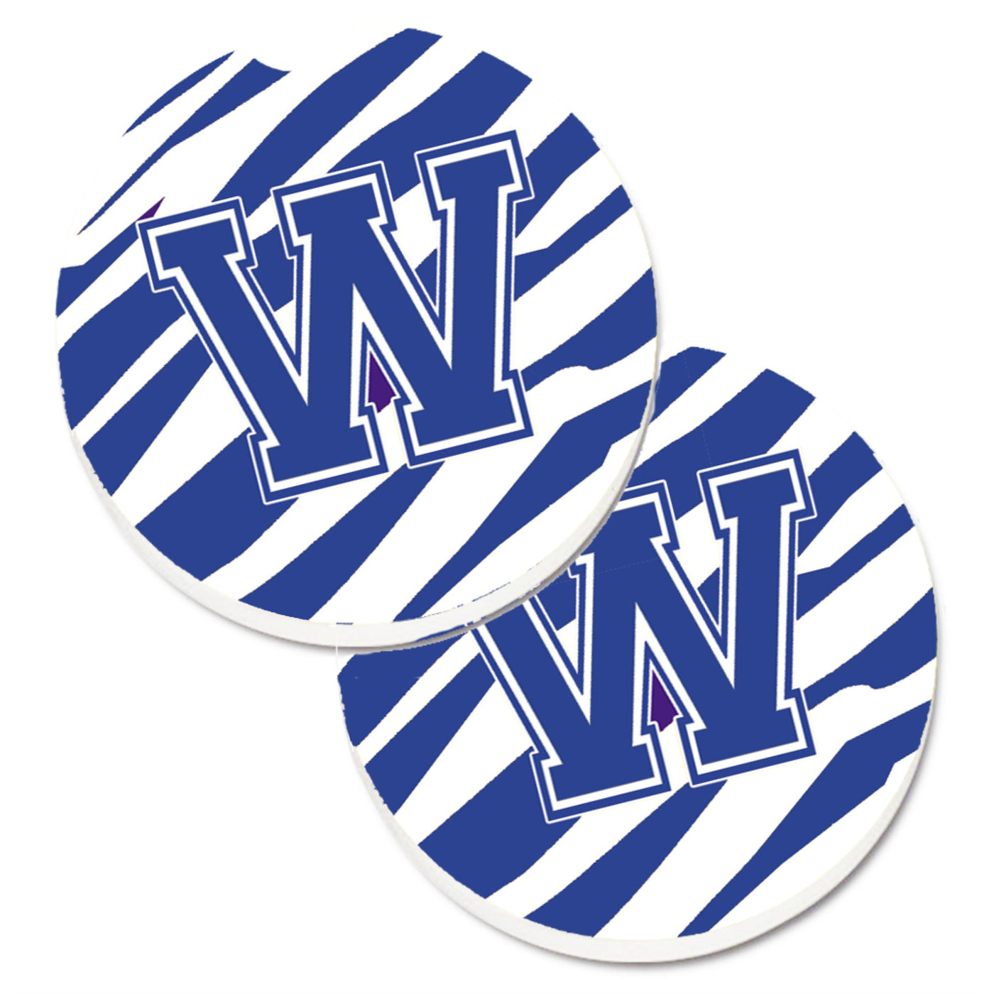 'Caroline's Treasures Monogram Initial W Tiger Stripe Blue & White Set of 2 Cup Holder Car Coasters CJ1034-WCARC 2.56 Multicolor''