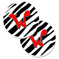 'Caroline's Treasures Monogram Initial W Zebra Red Set of 2 Cup Holder Car Coasters CJ1024-WCARC 2.56 Multicolor''