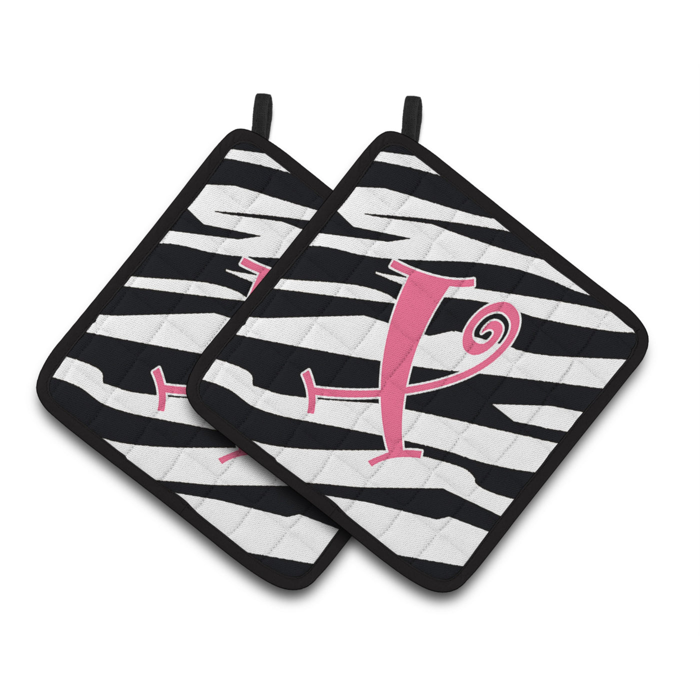 'Caroline's Treasures Monogram Initial x Zebra Stripe & Pink Pair of Pot Holders CJ1037-XPTHD 7.5HX7.5W Multicolor''