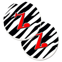 'Caroline's Treasures Monogram Initial Z Zebra Red Set of 2 Cup Holder Car Coasters CJ1024-ZCARC 2.56 Multicolor''