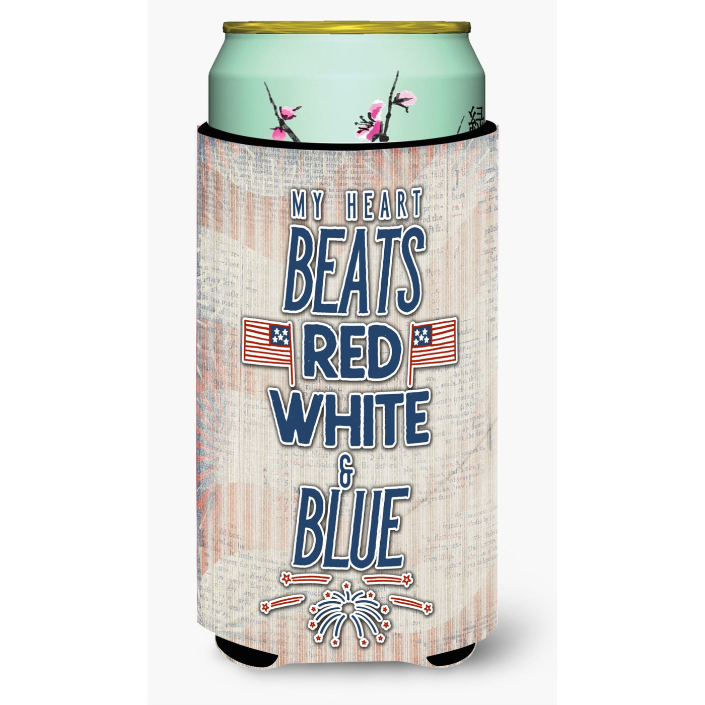 'Caroline's Treasures My Heart Beats Red White & Blue Tall Boy Beverage Insulator Hugger Multicolor''