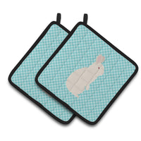 'Caroline's Treasures New Zealand White Rabbit Blue Check Decorated Pot Holder 7.5'''' x 7.5''''''
