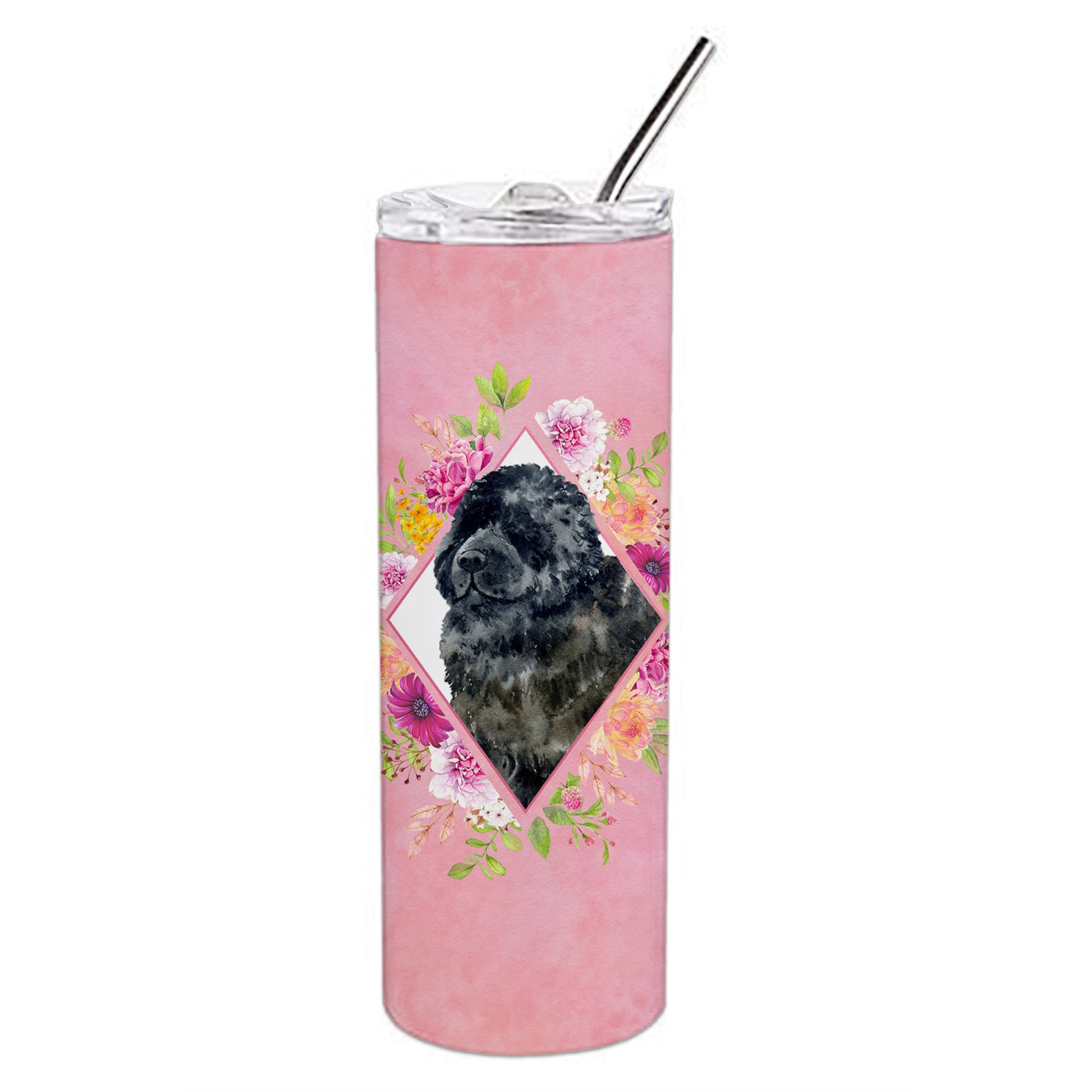 'Caroline's Treasures Newfoundland Pink Flowers Double Walled Stainless Steel 20 oz Skinny travel-insulated-tumblers Multicolor''