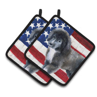 'Caroline's Treasures Newfoundland Puppy Patriotic Decorated pot holder 7.5H x 7.5W USA American Flag''