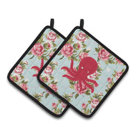 'Caroline's Treasures Octopus Shabby Chic Blue Roses Pair of Pot Holders BB1090-RS-BU-PTHD 7.5HX7.5W Multicolor''