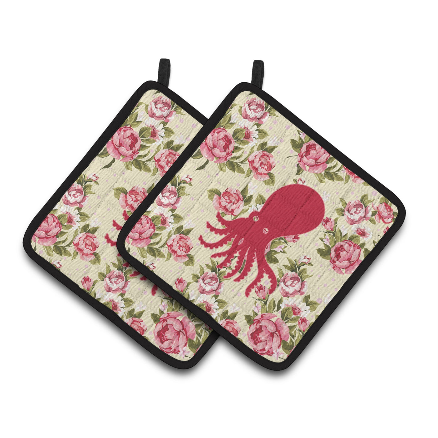 'Caroline's Treasures Octopus Shabby Chic Yellow Roses Pair of Pot Holders BB1098-RS-YW-PTHD 7.5HX7.5W Multicolor''