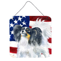 'Caroline's Treasures Papillon Patriotic Metal Print 6h x 6w USA American Flag''