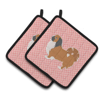 'Caroline's Treasures Pekingese Checkerboard Pink Pair of Pot Holders BB3638PTHD 7.5HX7.5W Multicolor''