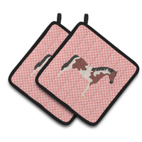 'Caroline's Treasures Pinto Horse Pink Check Decorated Pot Holder 7.5'''' x 7.5''''''
