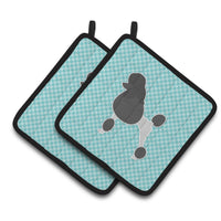 'Caroline's Treasures Poodle Checkerboard Blue Pair of Pot Holders BB3739PTHD 7.5HX7.5W Multicolor''