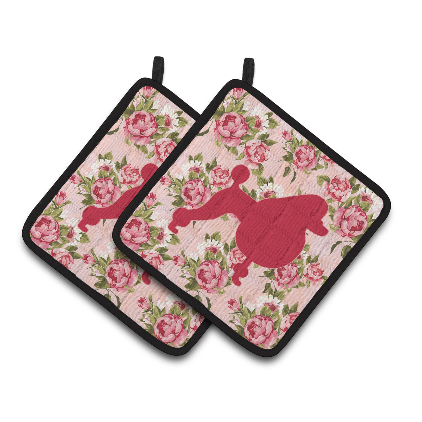 'Caroline's Treasures Poodle Shabby Chic Pink Roses Pair of Pot Holders BB1072-RS-PK-PTHD 7.5HX7.5W Multicolor''