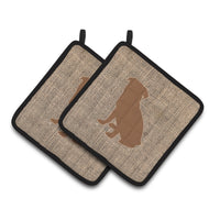 'Caroline's Treasures Pug Faux Burlap & Brown Pair of Pot Holders BB1084-BL-BN-PTHD 7.5HX7.5W Multicolor''