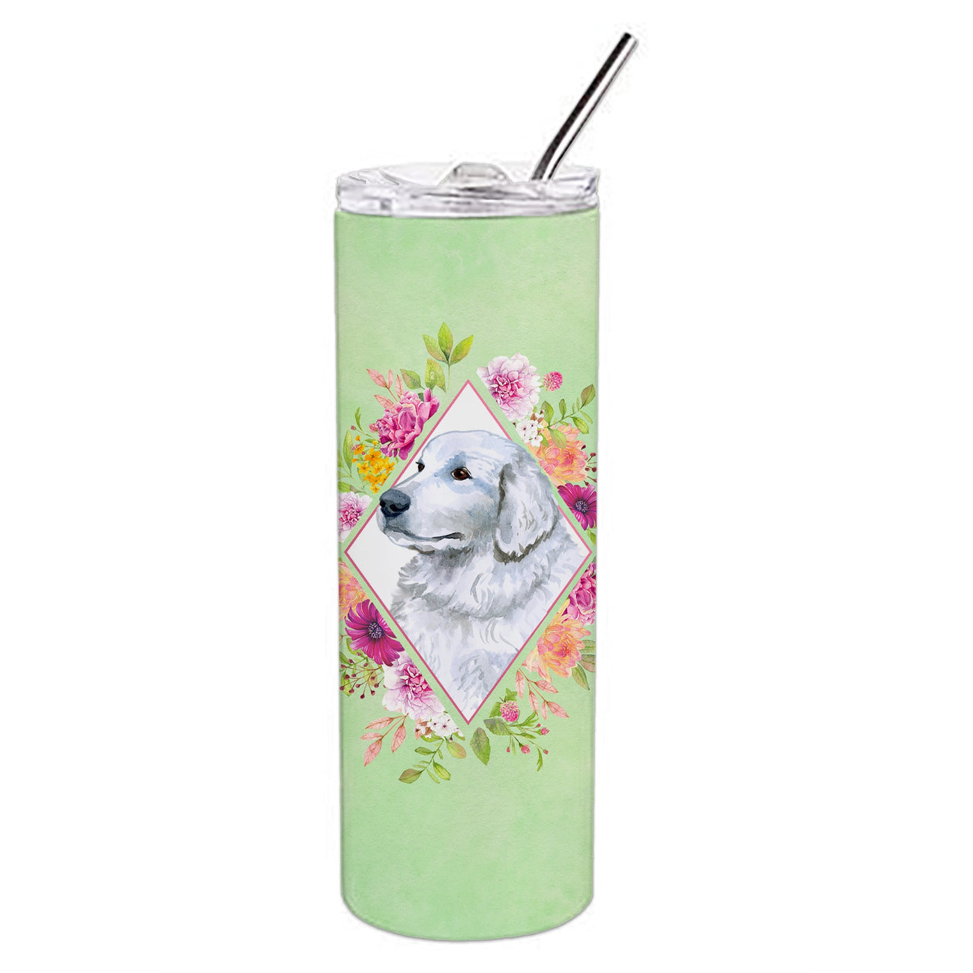 'Caroline's Treasures Pyrenees Green Flowers Double Walled Stainless Steel 20 oz Skinny travel-insulated-tumblers Multicolor''