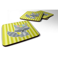 'Caroline's Treasures Raccoon with Flowers Foam Coaster Set of 4 3.5 Multicolor''