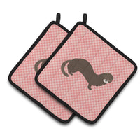 'Caroline's Treasures Russian or European Mink Pink Check Decorated Pot Holder 7.5'''' x 7.5''''''