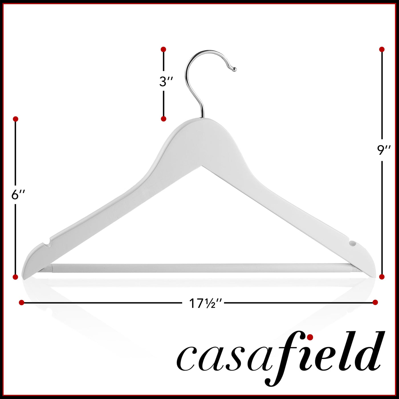 Casafield - 20 White Wooden Suit Hangers - Premium Lotus Wood with Notches & Chrome Swivel Hook for Dress Clothes Coats Jackets Pants Shirts Skirts