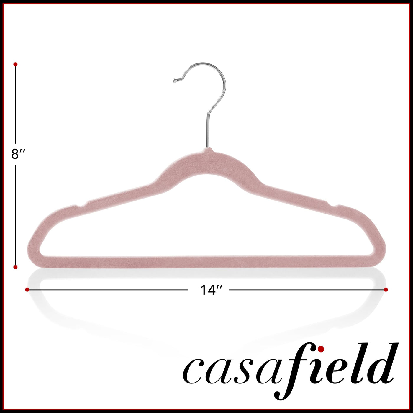 • Q: What is the size of the Casafield Velvet Kid's Hangers? A: The Casafield Velvet Kid's Hangers are designed with a width of 14 inches, making them suitable for children's clothes.