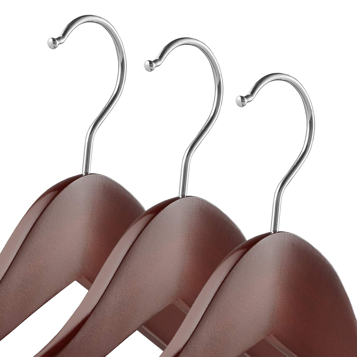 Casafield - 6 Cherry Wide Shoulder Wooden Suit Hangers - Premium Lotus Wood, Non-Slip Pant Bar & Chrome Swivel Hook For Dress Cl