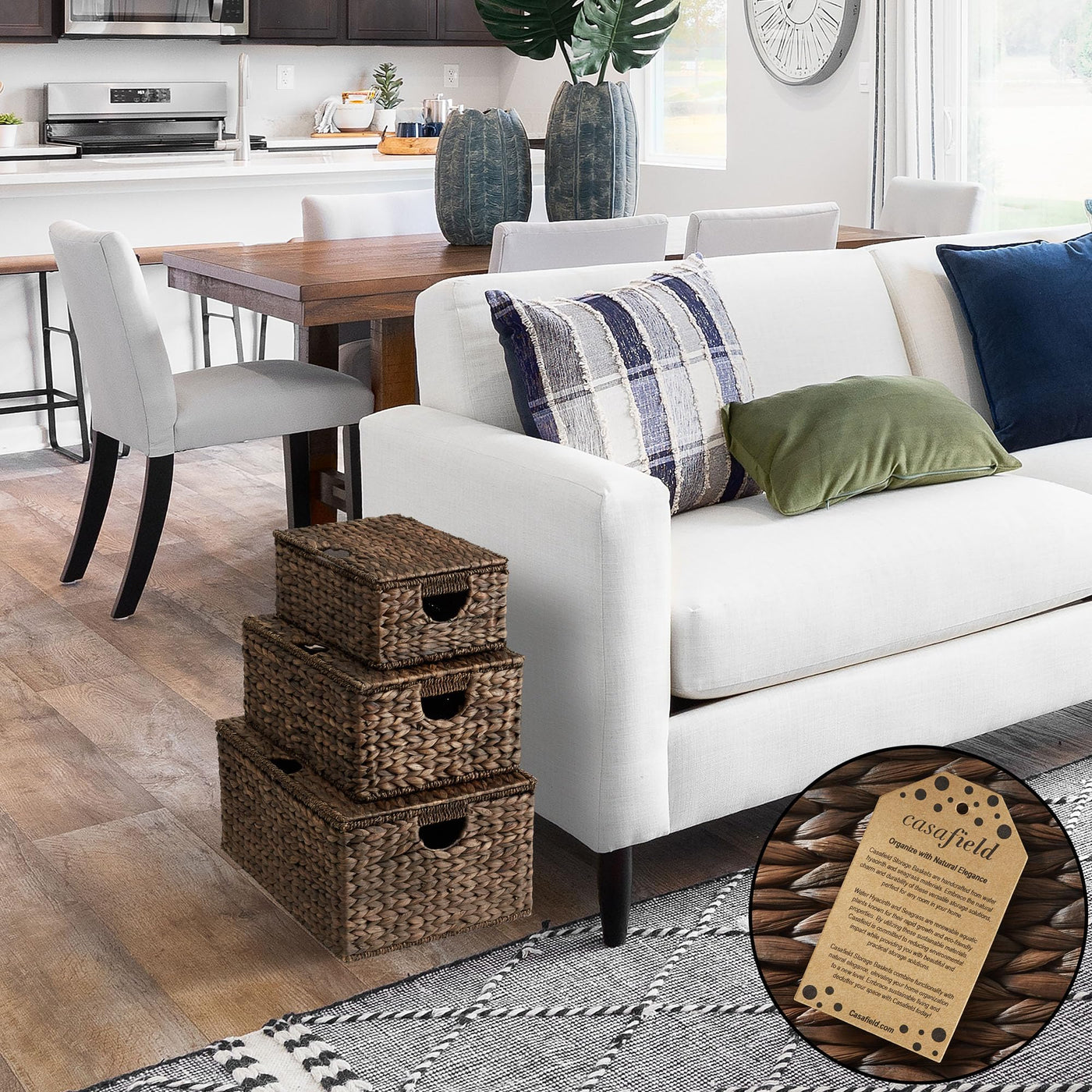 Casafield Set Of 3 Water Hyacinth Rectangular Storage Baskets With Lids (Small/Medium/Large), Multipurpose Decorative Shelf Orga