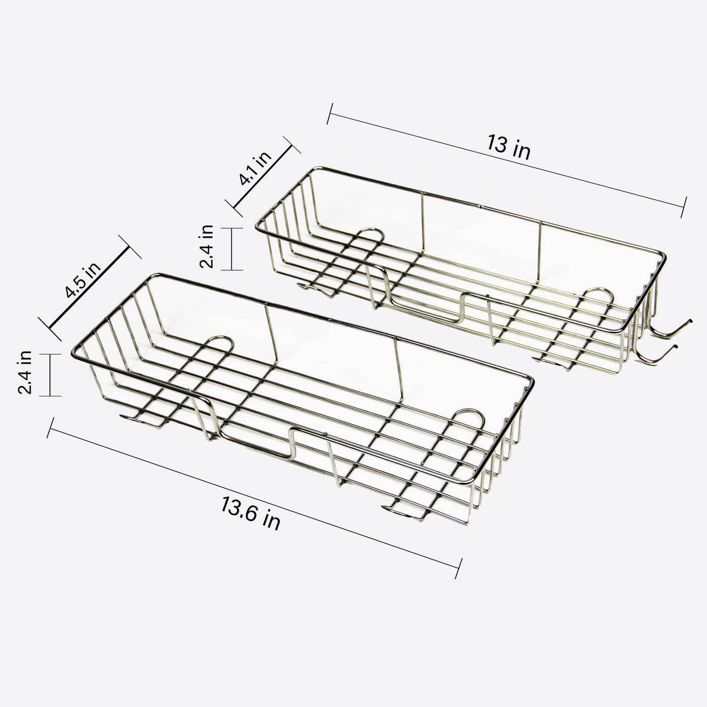 - Q: What are the dimensions of the shower caddy? A: The interior dimensions of the shower caddy are 12.4 inches by 4.7 inches by 4.6 inches and 12 inches by 4.2 inches by 4.2 inches, offering a large space for storage.