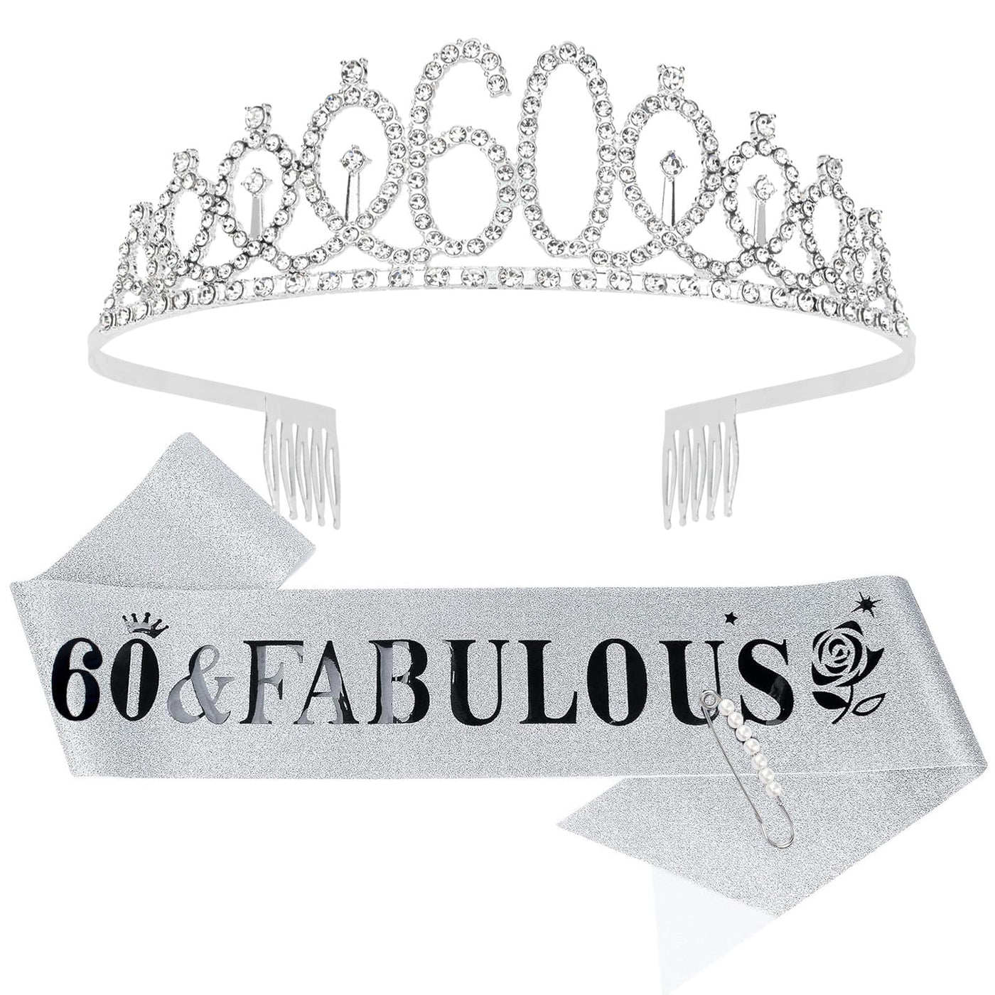 - Q: What is included in the Casoty 60th Birthday Sash and Tiara set? A: The set includes one '60 & Fabulous' birthday sash, one silver rhinestone tiara, and one pearl pin.