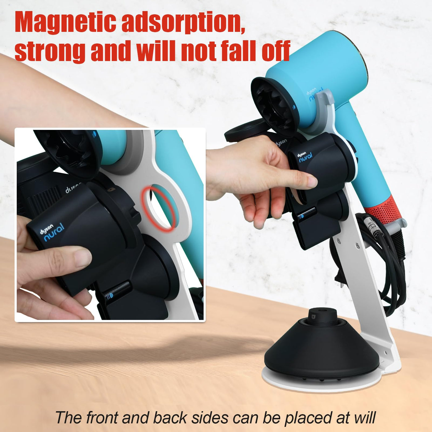 - Q: Can the stand holder hold multiple attachments for the Dyson hair dryer? A: Yes, the stand holder comes with 3 suction rings and a base that can store up to 5 different nozzles at the same time.
