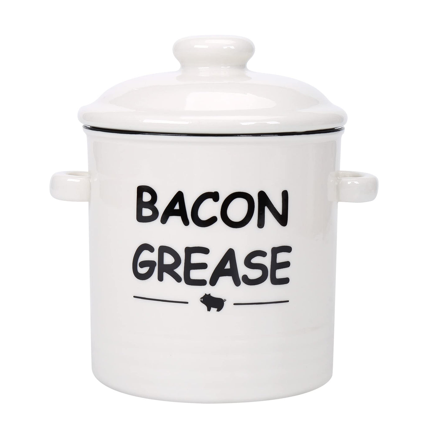 - Q: What is the capacity of the Ceramic Bacon Grease Container? A: The Ceramic Bacon Grease Container has a liquid holding capacity of 20 ounces.