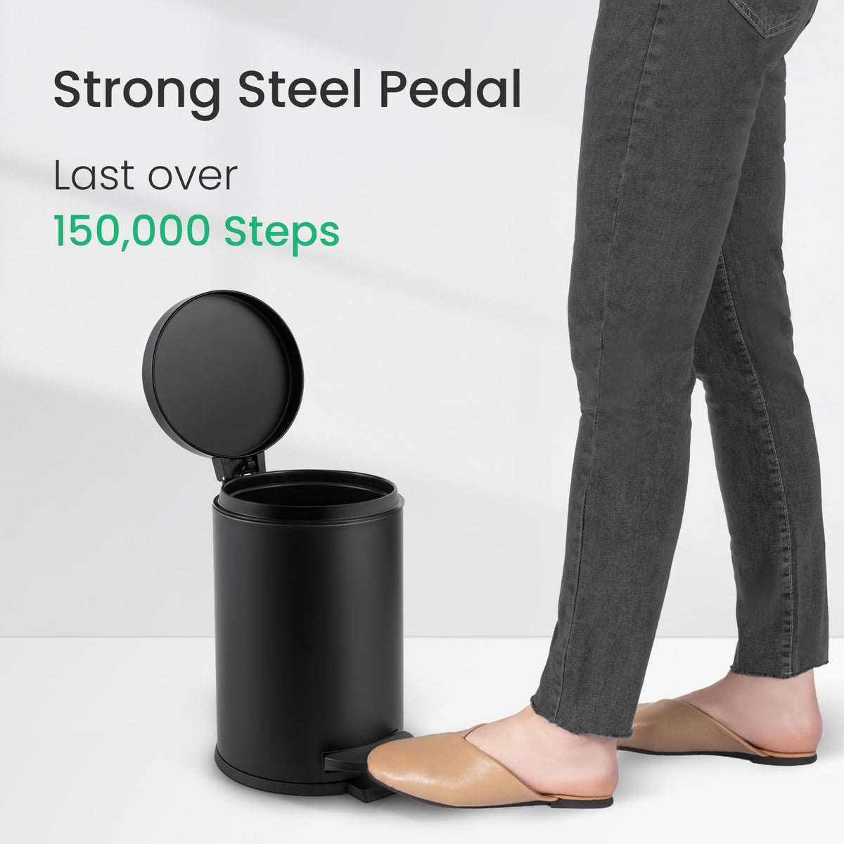 - Q: What is the weight capacity of the trash can? A: While the product does not specify a weight capacity, it is designed to hold up to 4.5 liters or 1.2 gallons of waste.