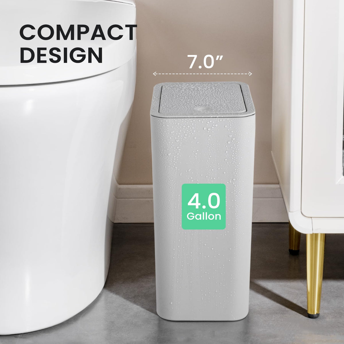 Cesun 2 Pack Bathroom Trash Can With Lid, 4.0 Gallon / 15 Liter Small Garbage Can With Press Top Lid, Plastic Wastebasket With P