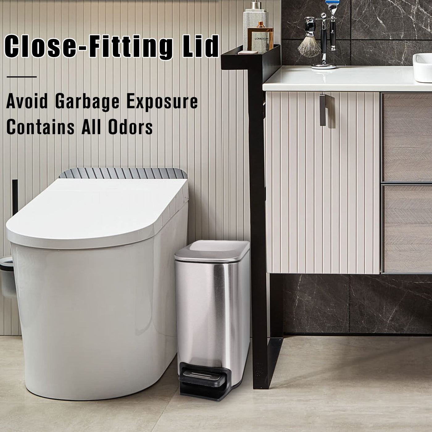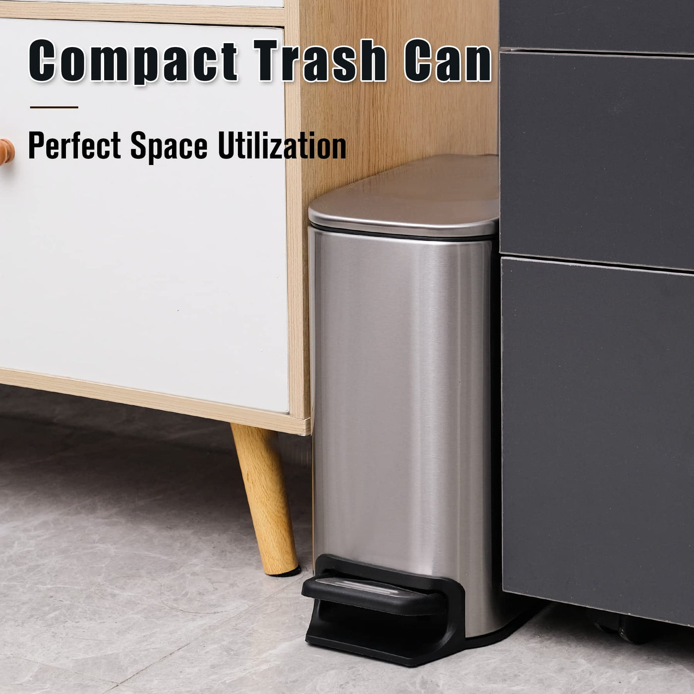 Cesun Small Bathroom Trash Can With Lid Soft Close, Step Pedal, 6 Liter / 1.6 Gallon Stainless Steel Garbage Can With Removable