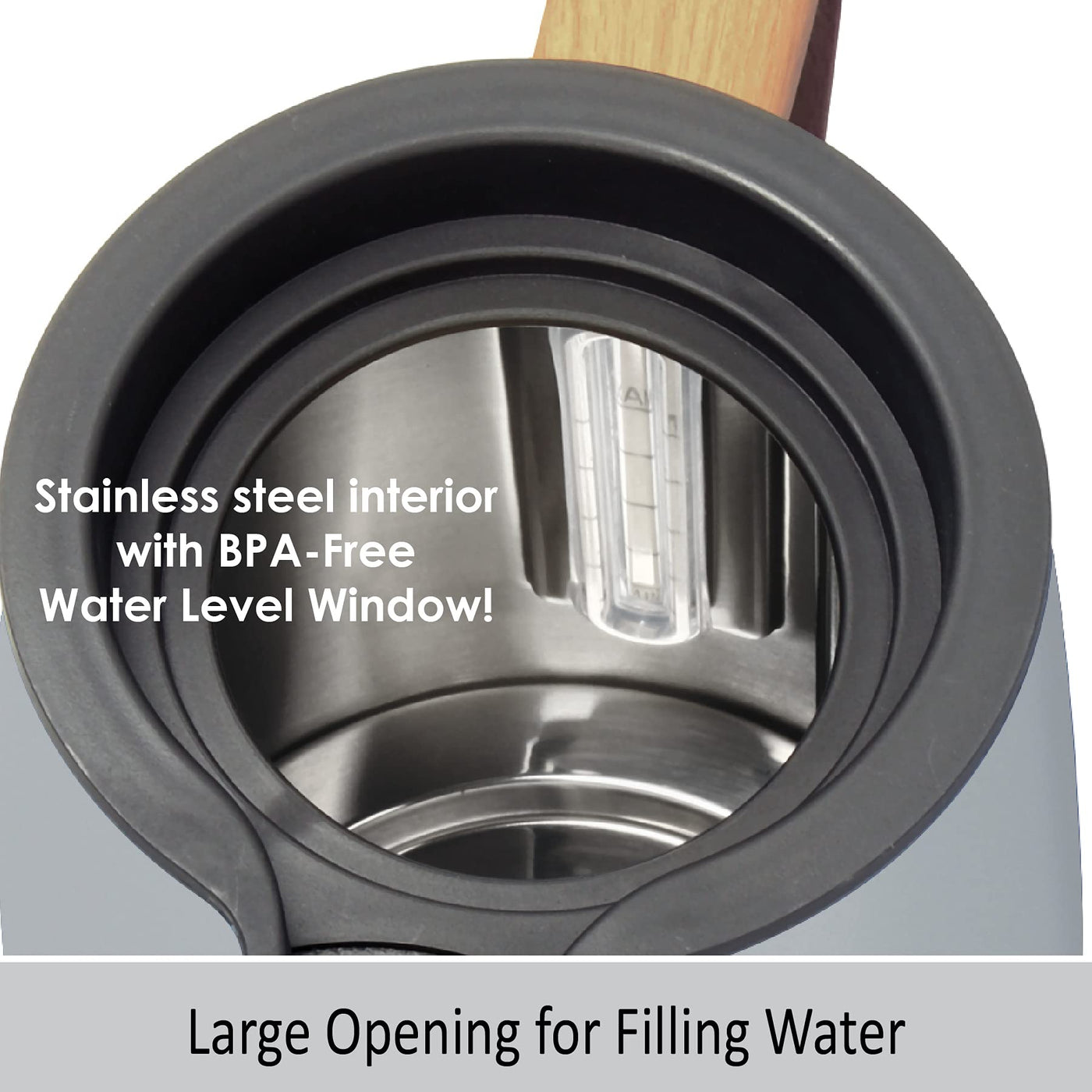 • Q: Is the kettle made of safe materials? A: Yes, the kettle features a stainless steel interior and all plastic components that contact water are non-toxic and BPA-free.