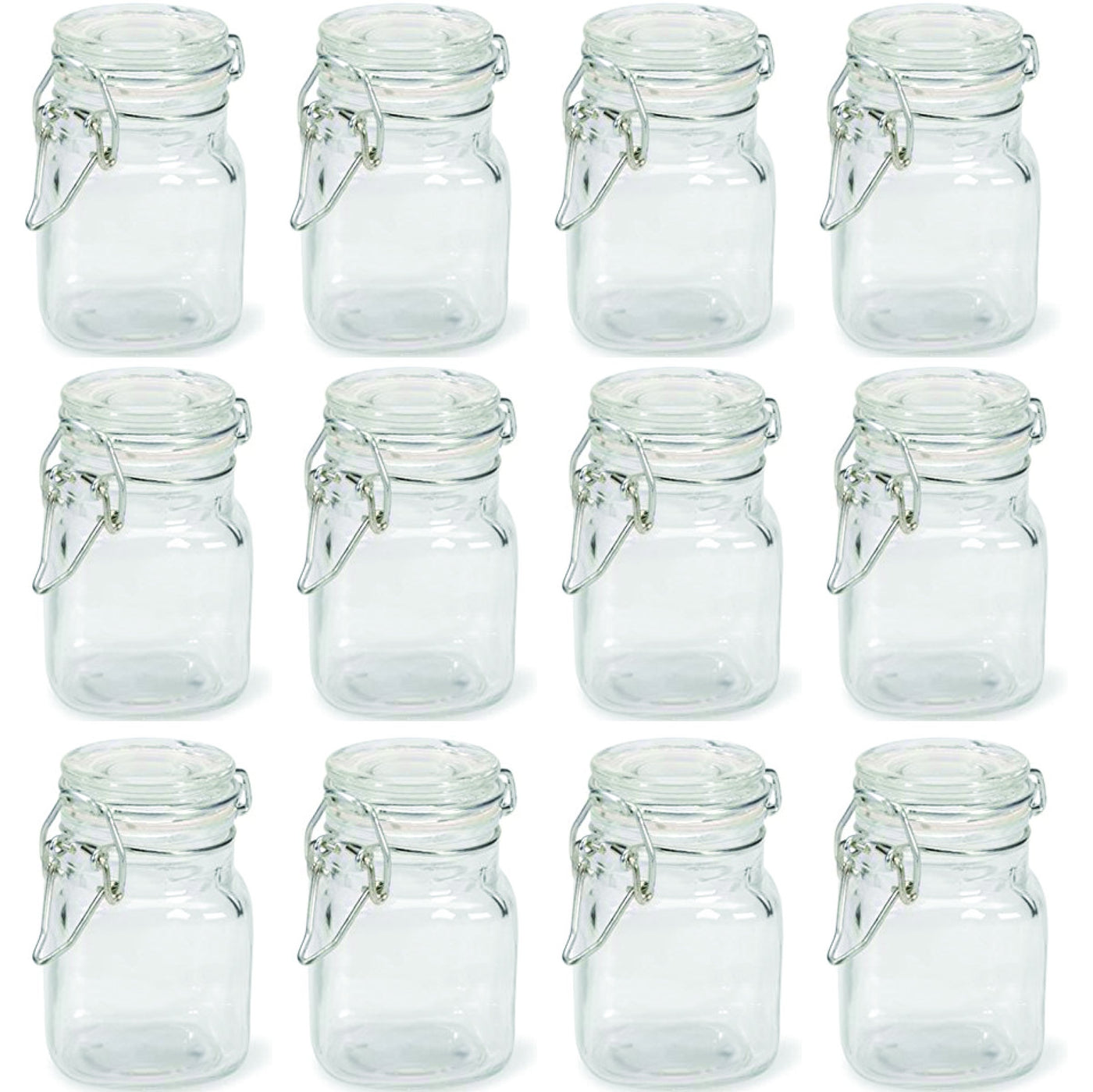 Charmed 3 Oz Airtight Square Spice Glass Jar With Leak Proof Rubber Gasket And Hinged Lid For Home (12)