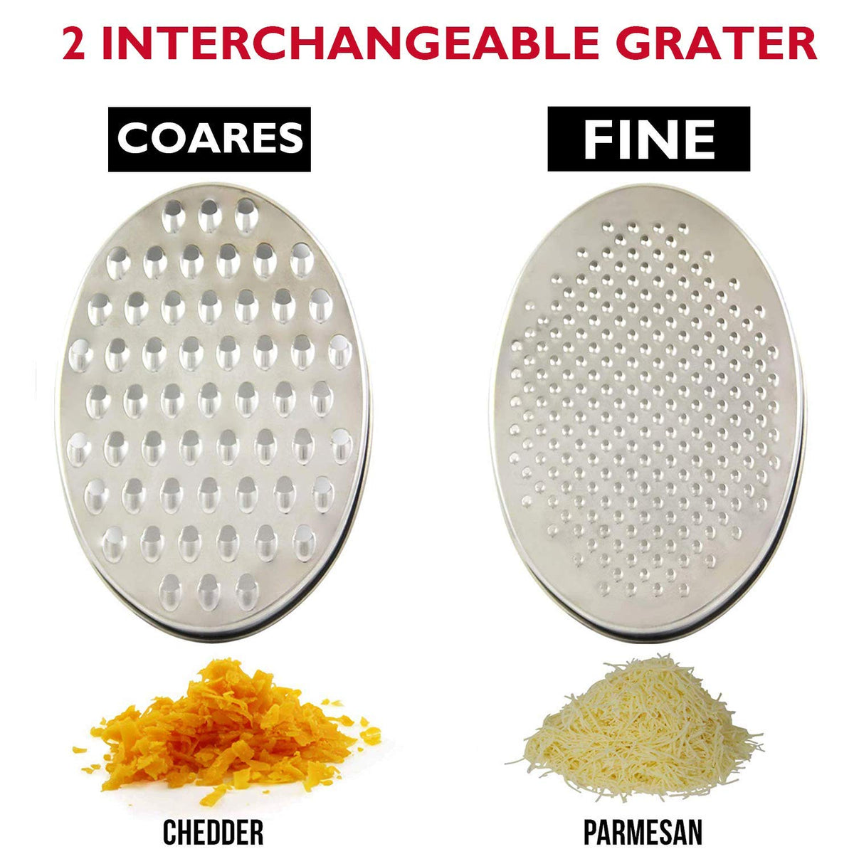 - Q: Are there different grating options available? A: Yes, the grater includes two different planar options for fine and coarse grating.