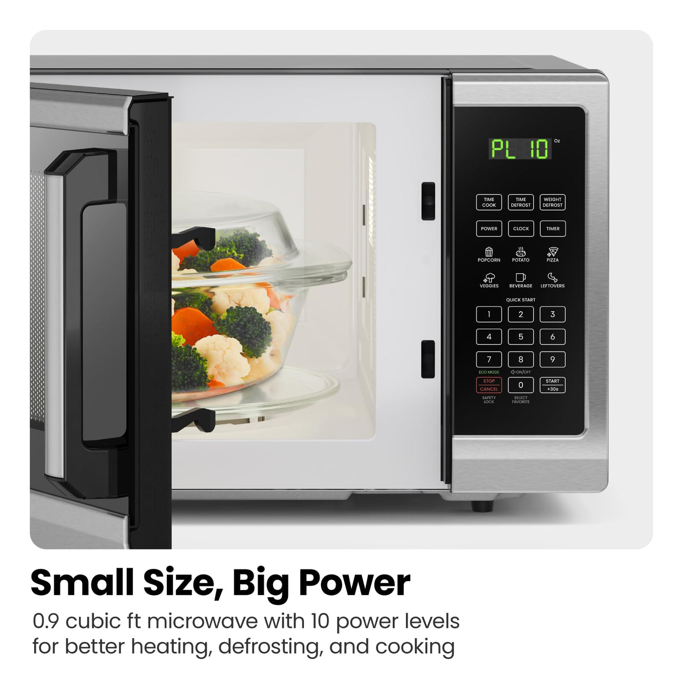 Chefman Countertop Microwave Oven 0.9 Cu. Ft. Digital Stainless Steel Microwave 900 Watt With 6 Presets, Eco Mode, Mute Option,