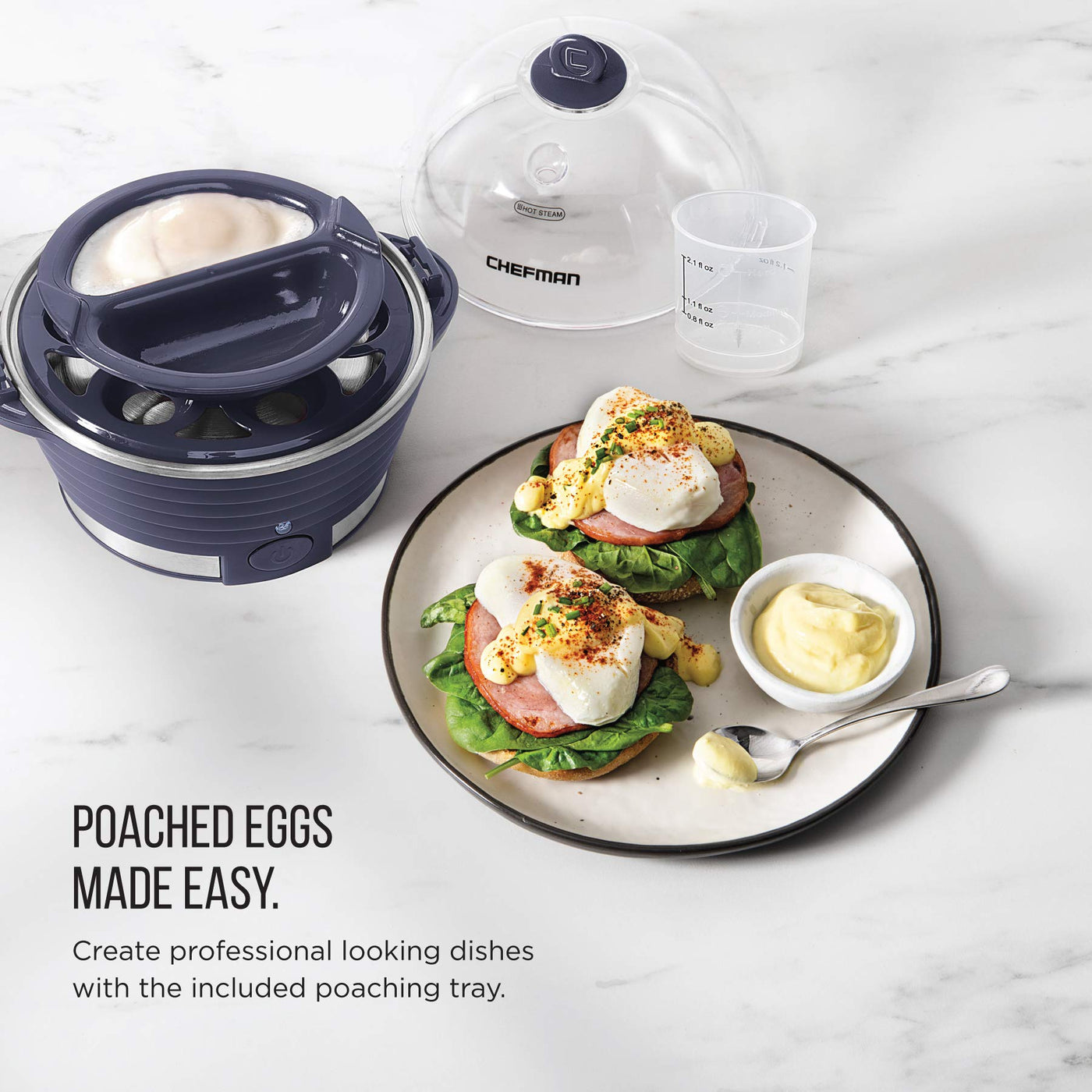 Chefman Electric Egg Cooker Boiler, Rapid Poacher, Food & Vegetable Steamer, Quickly Makes Up To 6, Hard, Medium Or Soft Boiled,