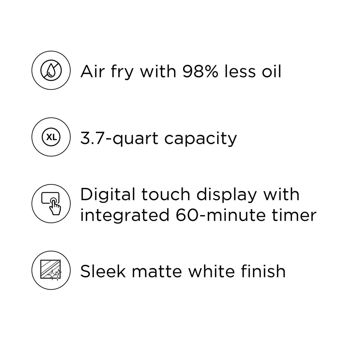 Chefman Small Air Fryer Healthy Cooking, 3.7 Qt, Nonstick, User Friendly And Digital Touch Screen, W/ 60 Minute Timer & Auto Shu