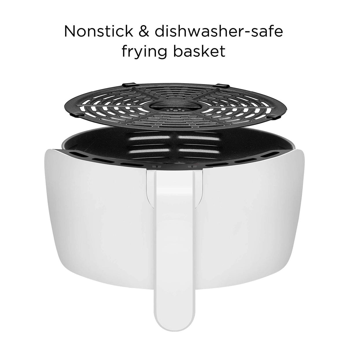• Q: Is the frying basket dishwasher safe? A: Yes, the removable frying basket is nonstick and dishwasher safe, making cleanup easy.