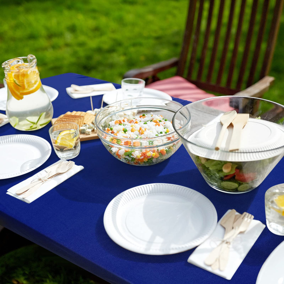 - Q: What is included in the package? A: The package includes one fitted tablecloth in navy blue.
