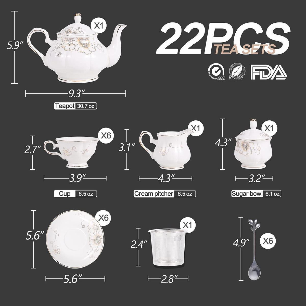 Chenp.Hmc Tea Set 22-Piece Porcelain Ceramic Coffee Tea Gift Sets Cups Saucer Service For 6 Teapot Sugar Bowl Creamer Pitcher An